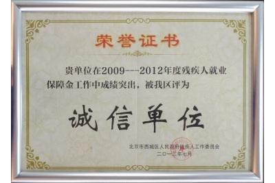 2013年我單位被北京市西城區(qū)人民政府評(píng)為《誠(chéng)信單位》